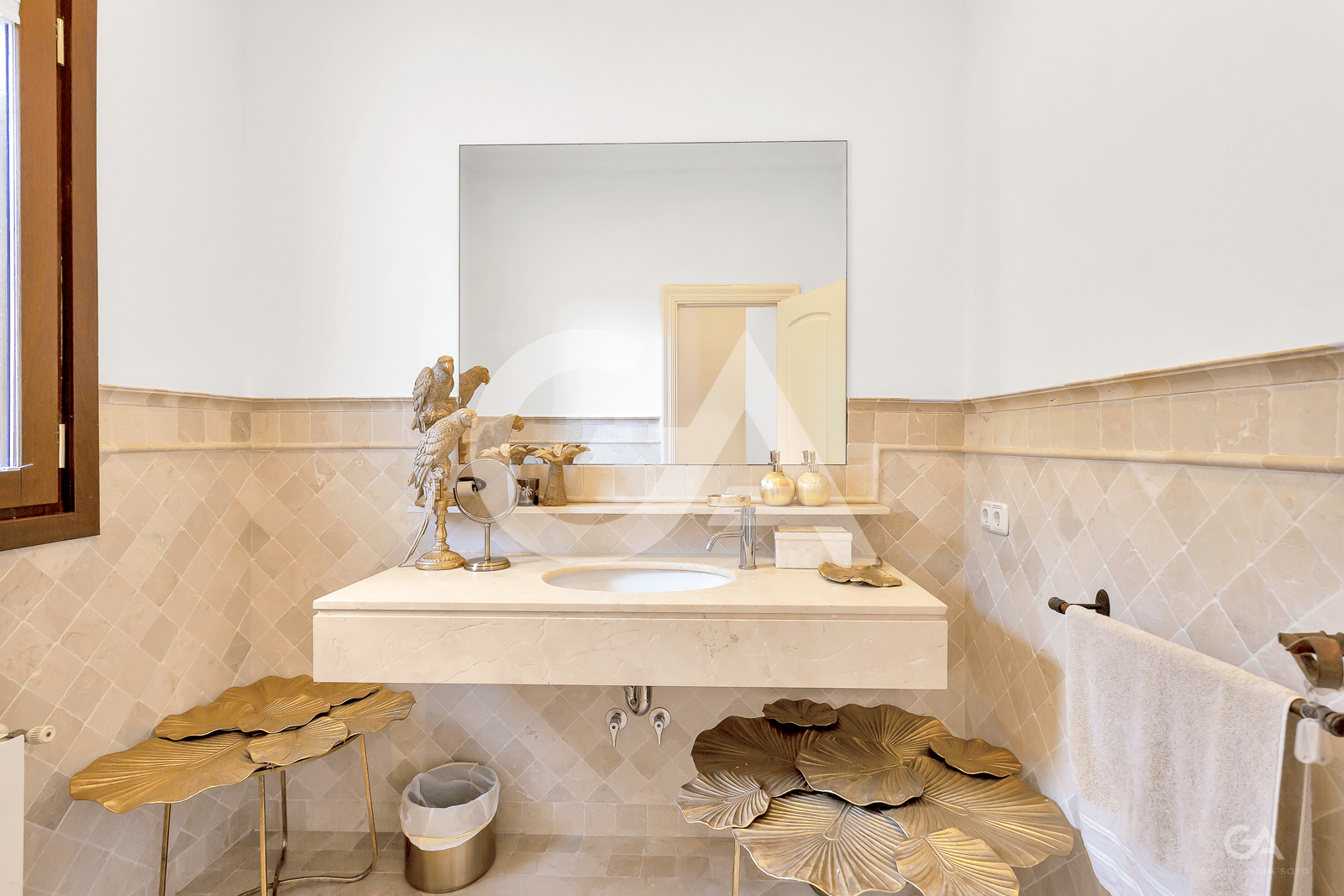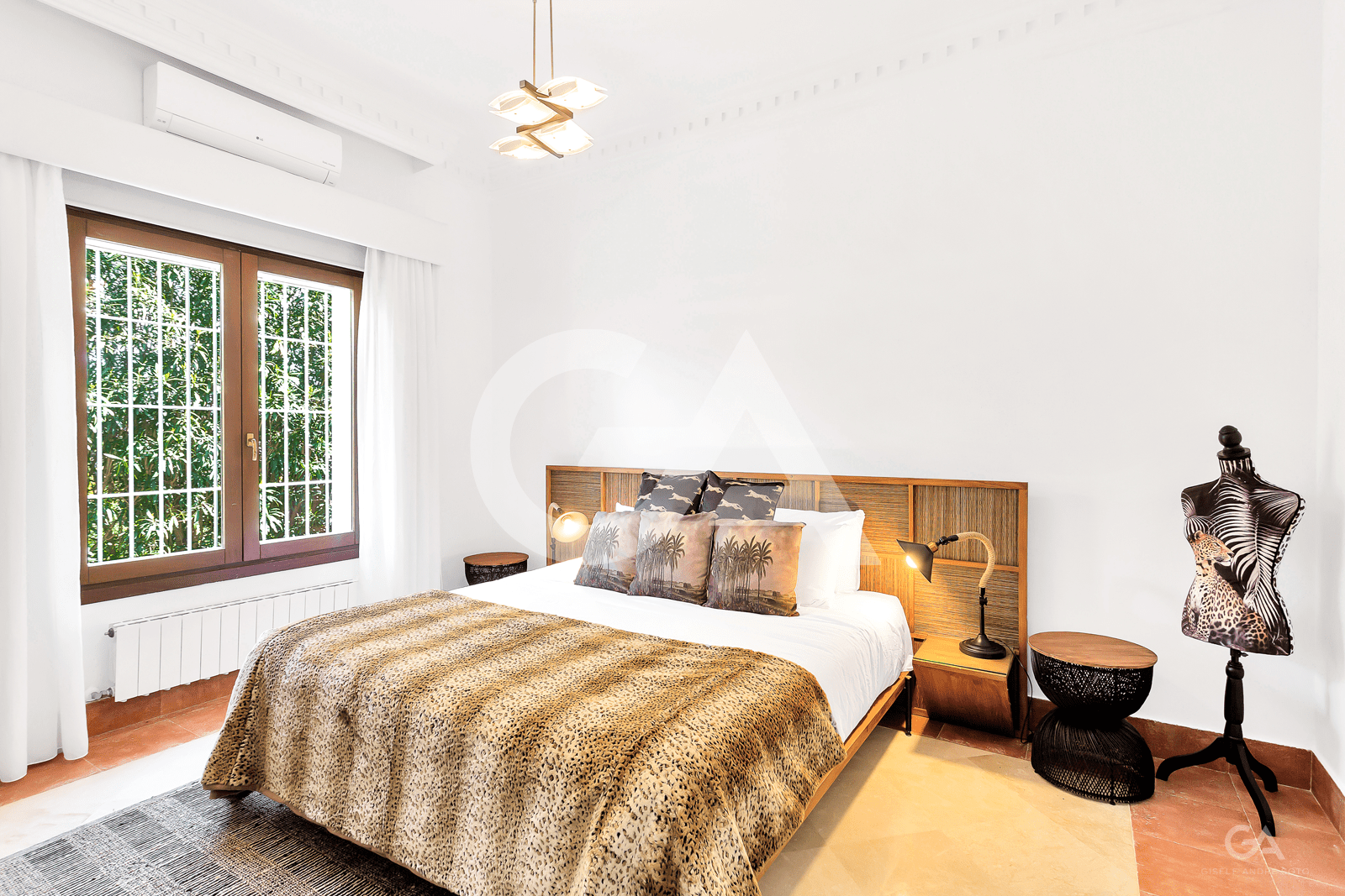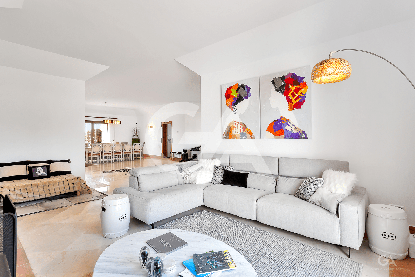 This luxury villa in Sotogrande exudes Mediterranean charm, with its open-plan layout and seamless integration of indoor and outdoor spaces. The lush garden and private pool area, framed by the rolling hills of Zone G, create a tranquil oasis that complements the villa’s elegant design. Thoughtful details, such as glass fold-away doors and a courtyard entrance, enhance the villa’s aesthetic, appealing to buyers seeking a luxury villa in Sotogrande that captures the essence of Costa del Sol living while offering modern comforts.