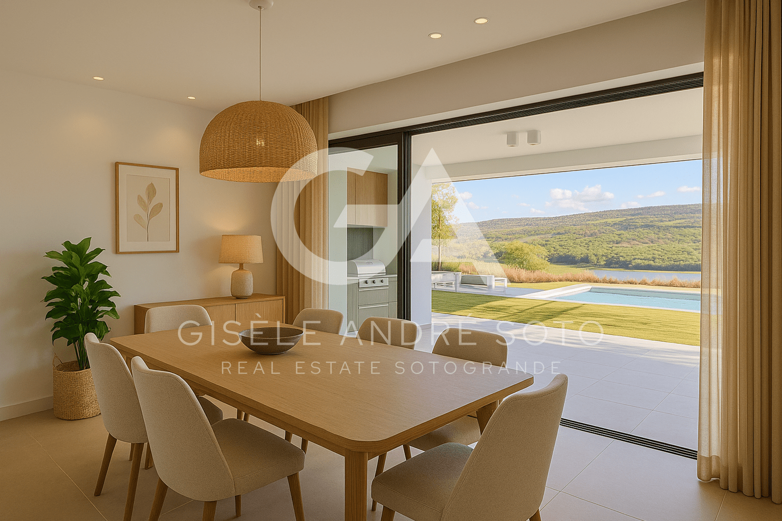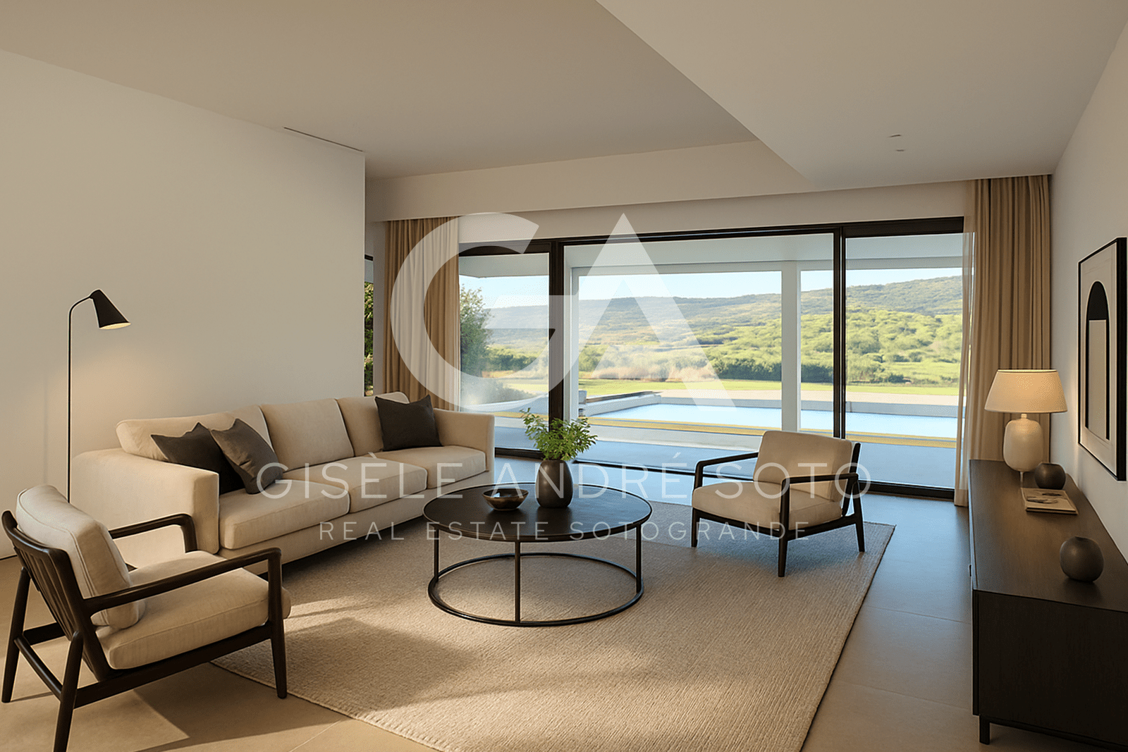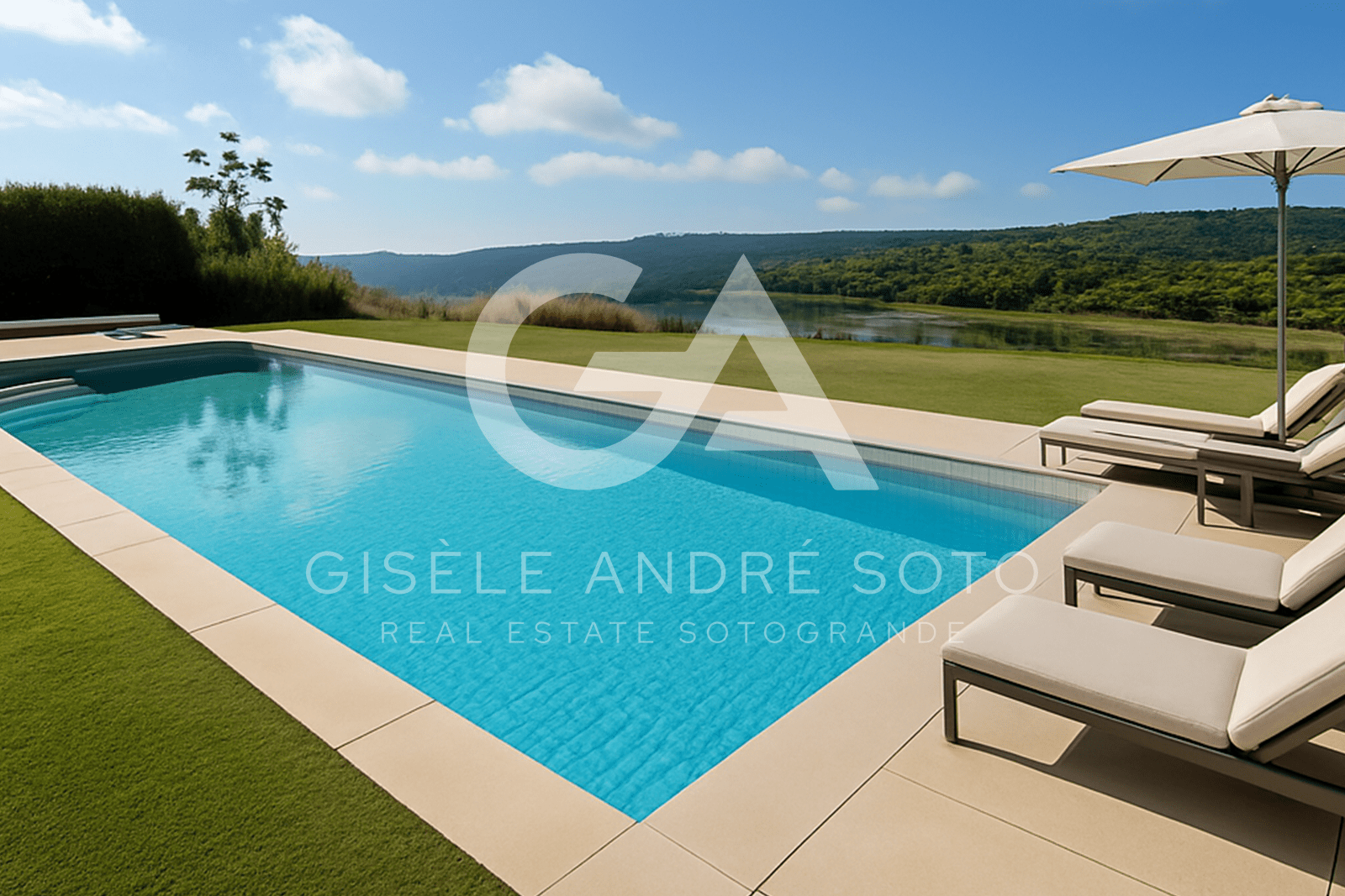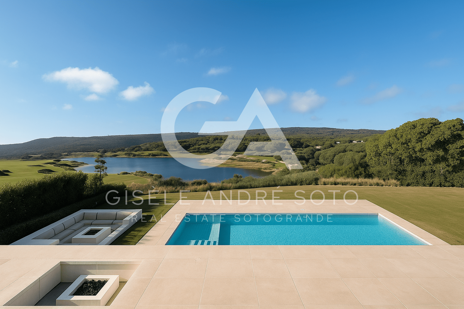 Contemporary villa commands a prime frontline golf villa with breathtaking panoramic views across a serene lake and distant glimpses of the Mediterranean Sea. Spanning an impressive 1,070 m² of built space on a generous 4,802 m² plot, this meticulously designed residence blends modern elegance with unparalleled comfort, offering an exceptional lifestyle opportunity in one of Sotogrande’s most coveted locations.