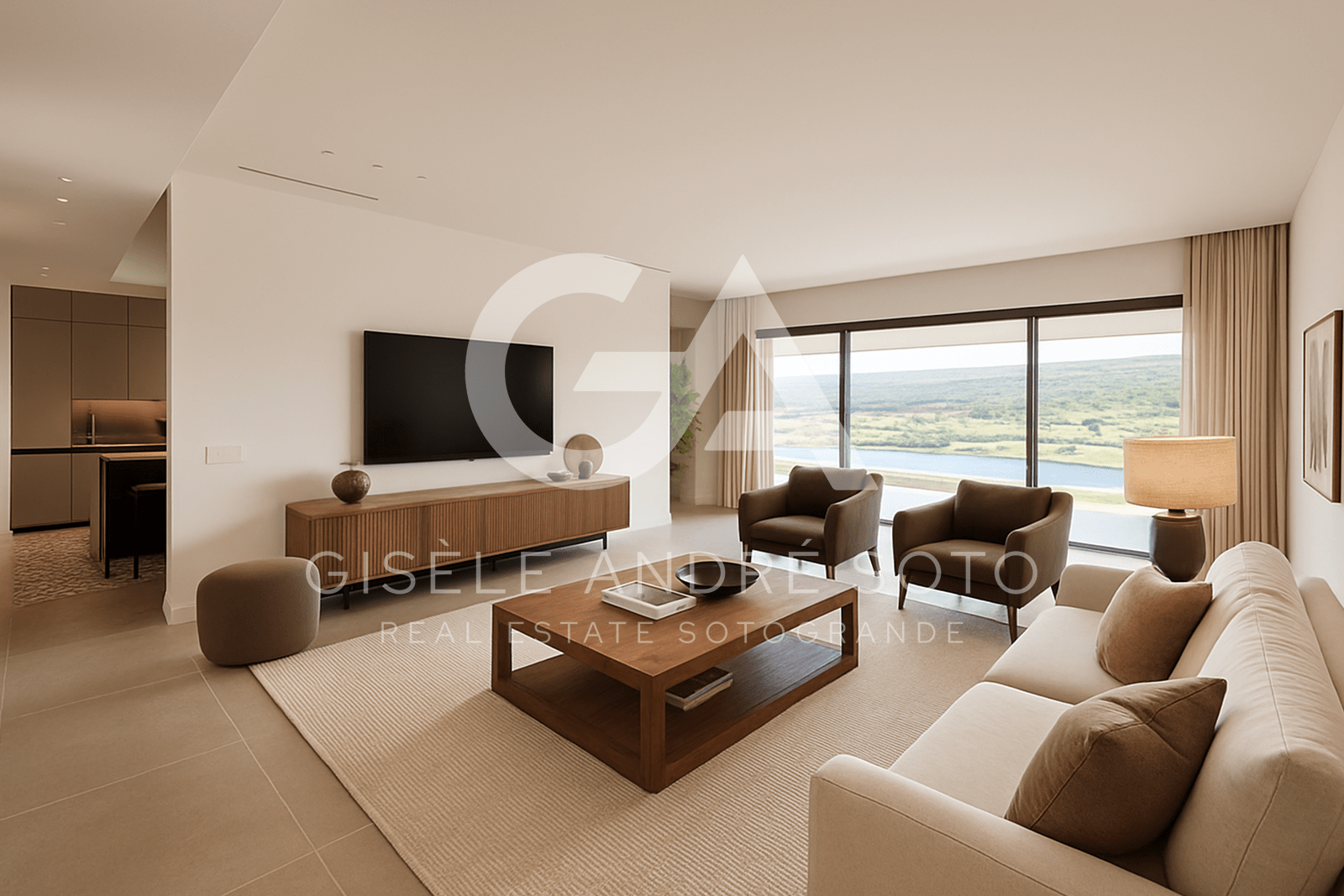 Contemporary villa commands a prime frontline golf villa with breathtaking panoramic views across a serene lake and distant glimpses of the Mediterranean Sea. Spanning an impressive 1,070 m² of built space on a generous 4,802 m² plot, this meticulously designed residence blends modern elegance with unparalleled comfort, offering an exceptional lifestyle opportunity in one of Sotogrande’s most coveted locations.