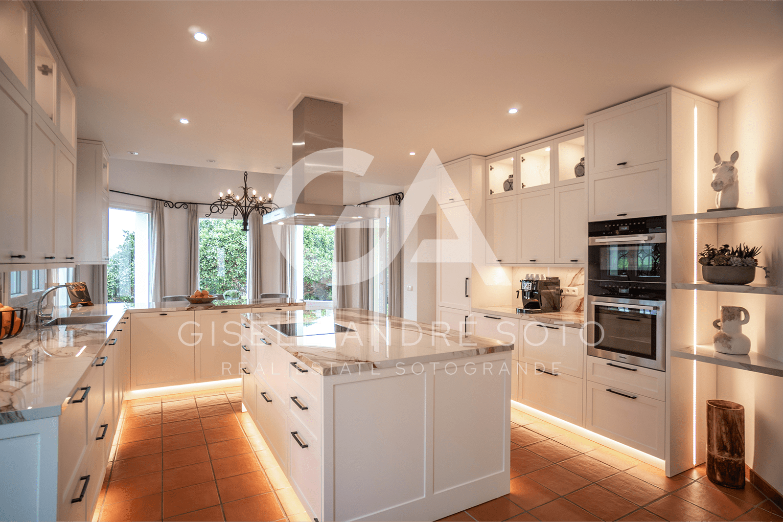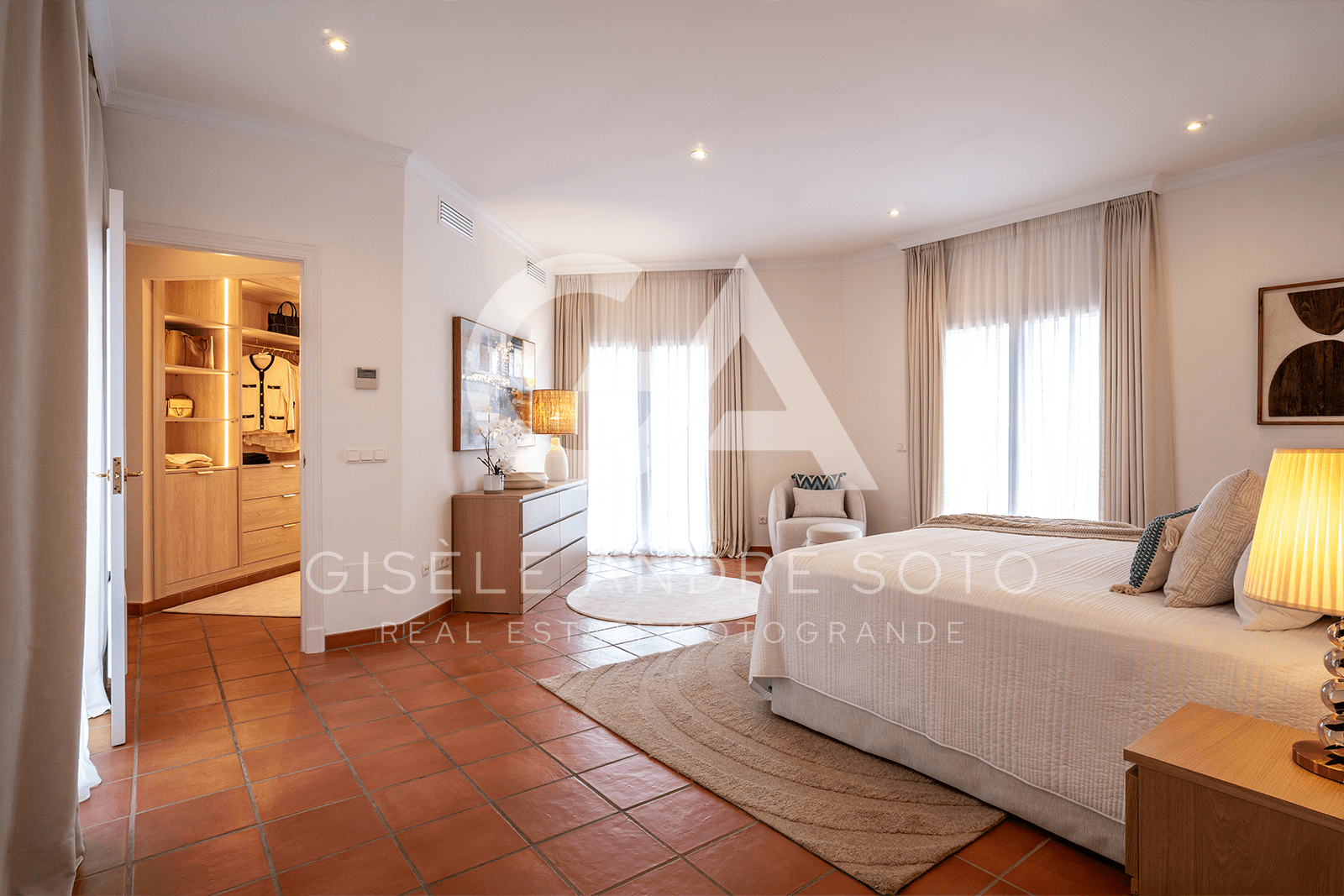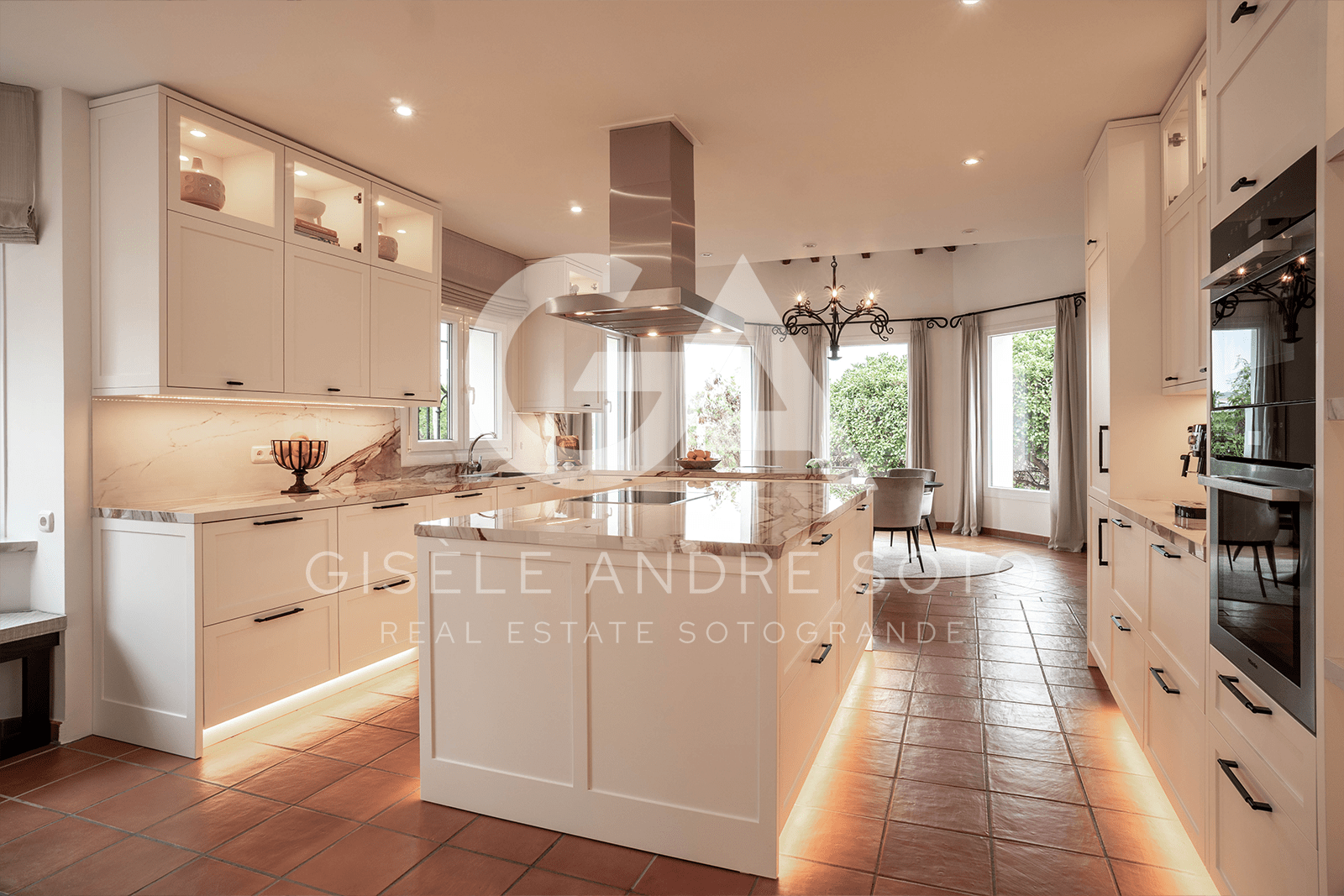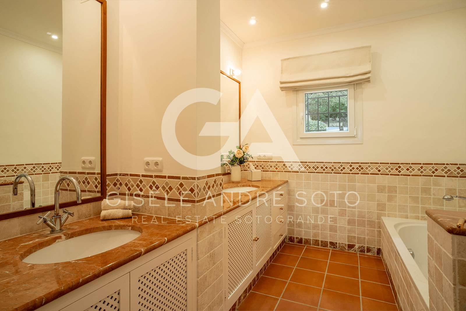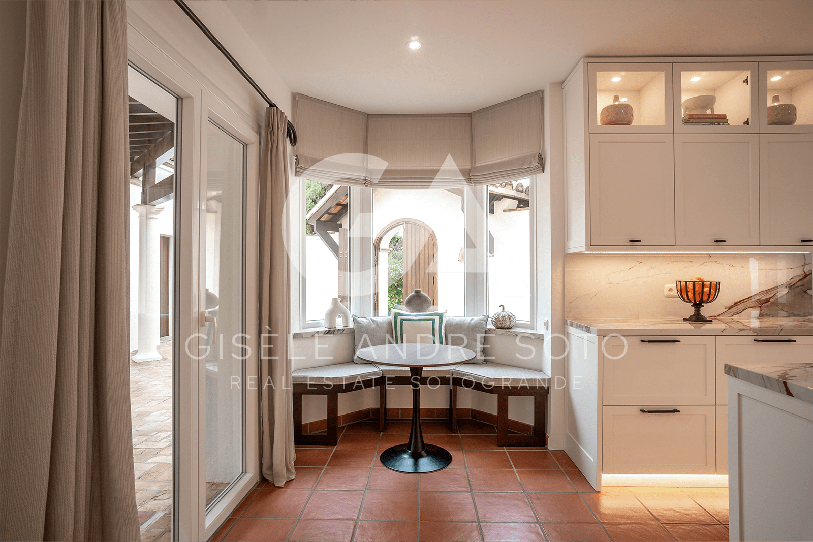 - Style: Traditional Spanish/Mediterranean with beamed ceilings and terracotta-style flooring