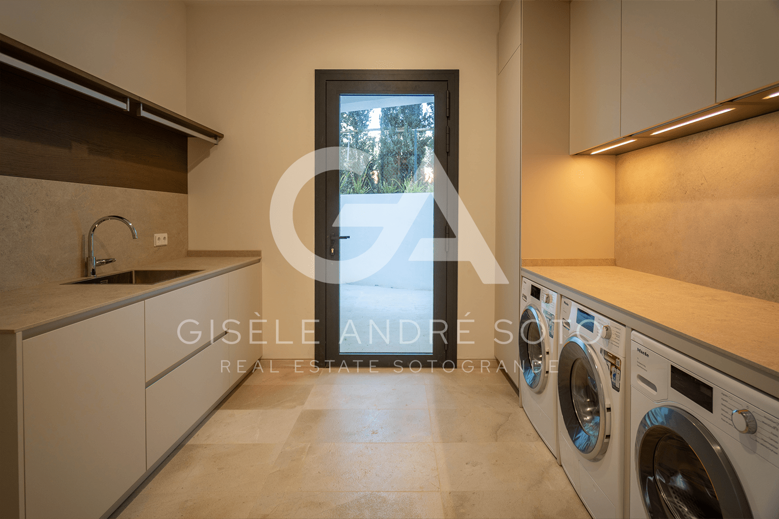 With a built footprint of 1,082 m² and over 920 m² of living space across three levels, the villa incorporates cutting-edge energy-efficient technologies for sustainable luxury living. It boasts a Class A energy rating, indoor air treatment systems, underfloor heating, and a solar panel system, ensuring minimal energy consumption and environmental impact.