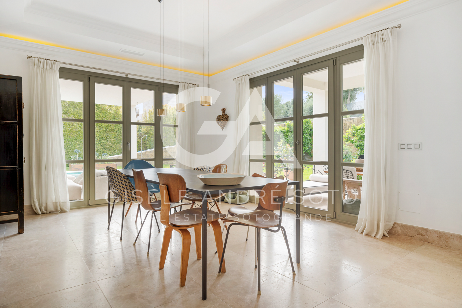 This villa in Zone F Sotogrande is nestled within a secure, tranquil enclave in Sotogrande Alto, offering privacy and peace. Its prime location provides access to world-class amenities, including the Valderrama Golf Course, La Reserva Club, tennis and paddle courts, and the Sotogrande Marina with its eclectic boutiques and dining. The Sotogrande International School caters to families, while proximity to The Beach enhances wellness options. The villa in Zone F Sotogrande is a coveted address for those seeking an elite lifestyle.