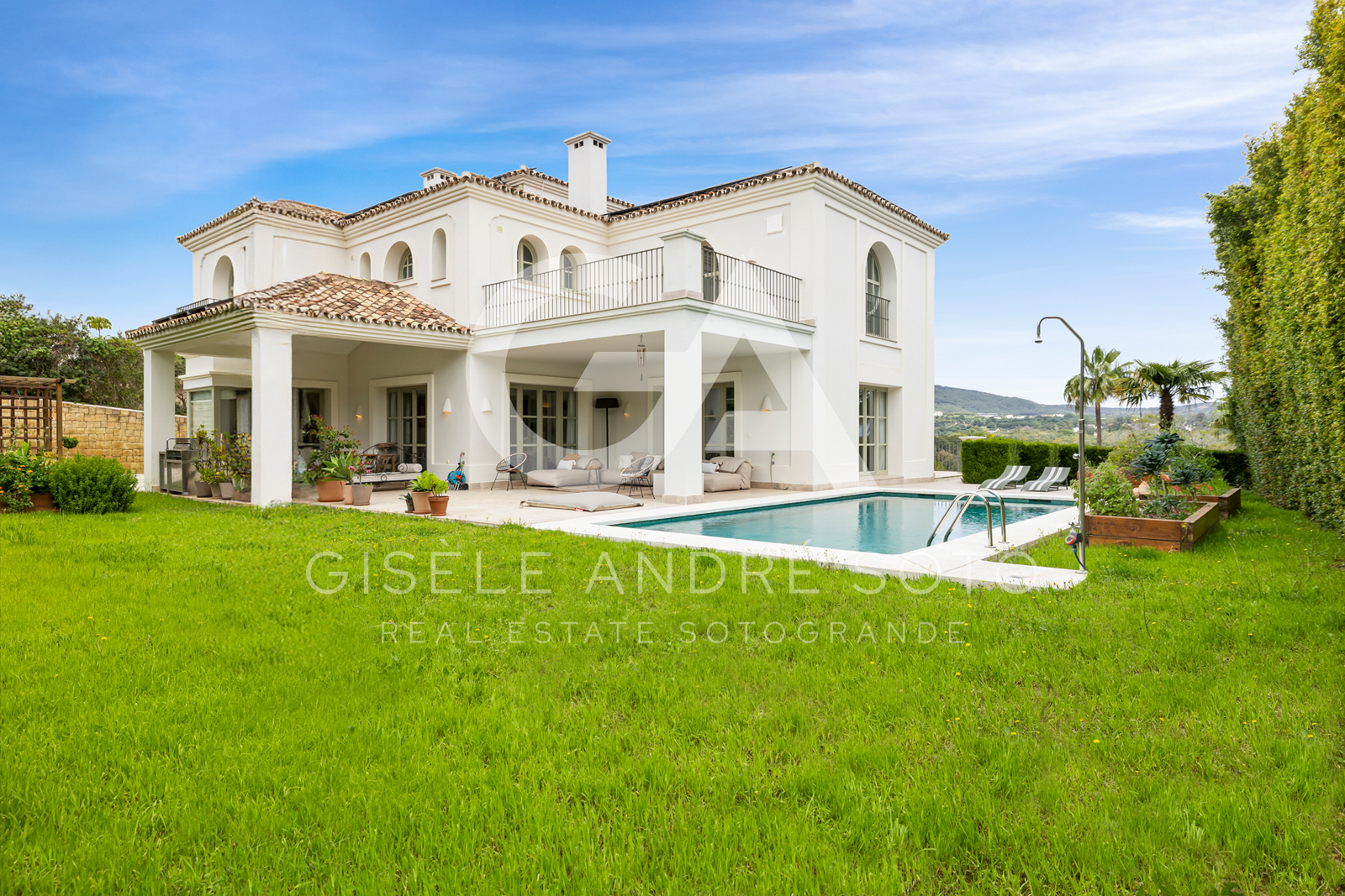Nestled in the serene hills of villa in Zone F Sotogrande Alto on a tranquil street, this prestigious family villa in Zone F, Sotogrande stands as a beacon of refined living. Crafted with the finest materials and guided by the expertise of GISÈLE ANDRÉ SOTO, this residence offers sweeping vistas of pristine golf courses, the rugged Sierra Bermeja, and the shimmering Mediterranean Sea. Located on the Costa del Sol, near Marbella and Estepona, the villa in Zone F Sotogrande blends timeless elegance with cutting-edge sophistication, delivering an unparalleled lifestyle for high-net-worth families seeking prestige, comfort, and scenic splendour.